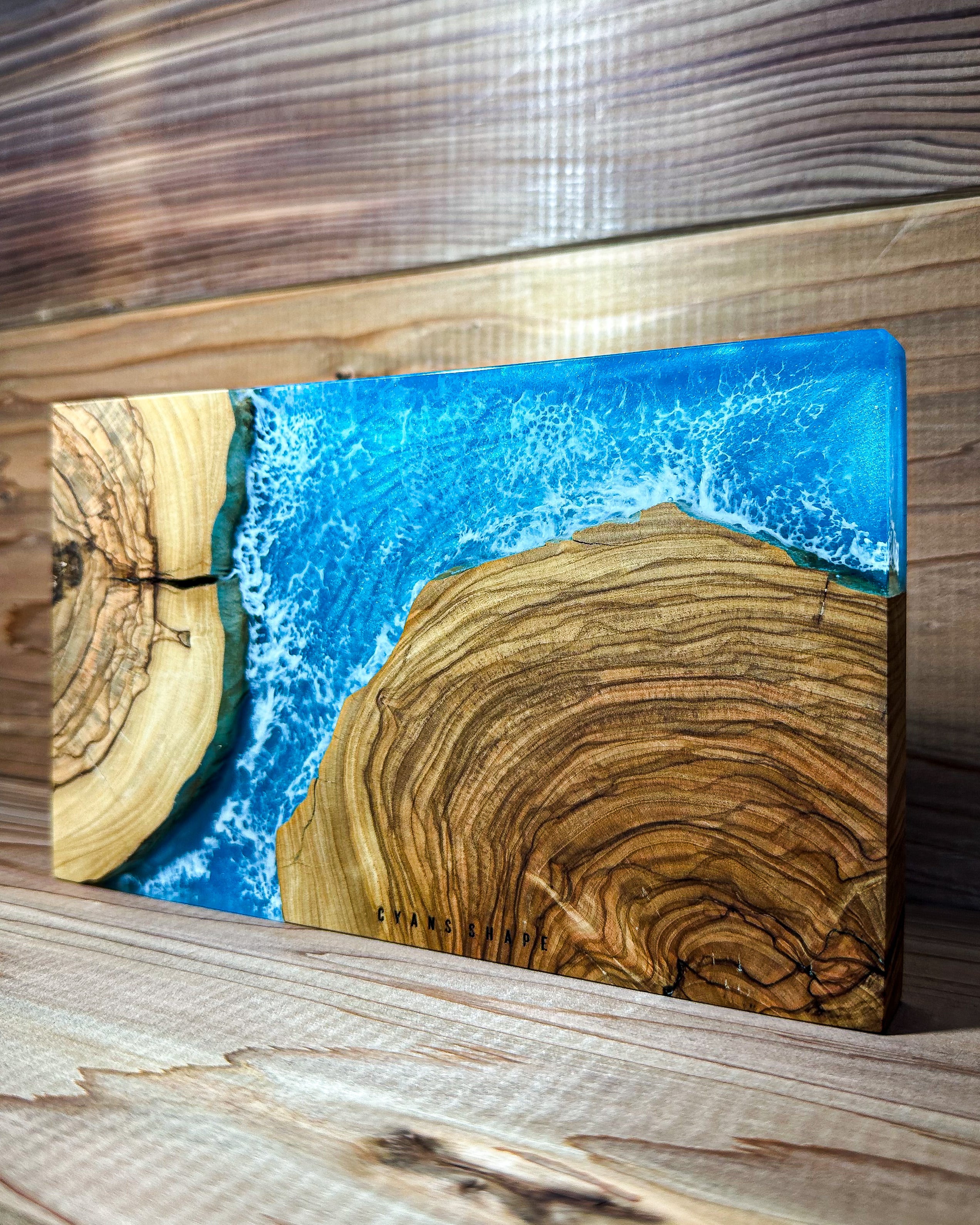 シェイパーが創り出す作品はひとつひとつ丁寧に手作業で仕上げます。樹脂の色や模様、木が持つ本来の特徴がそれぞれ異なるため、同じ作品は出来ません。