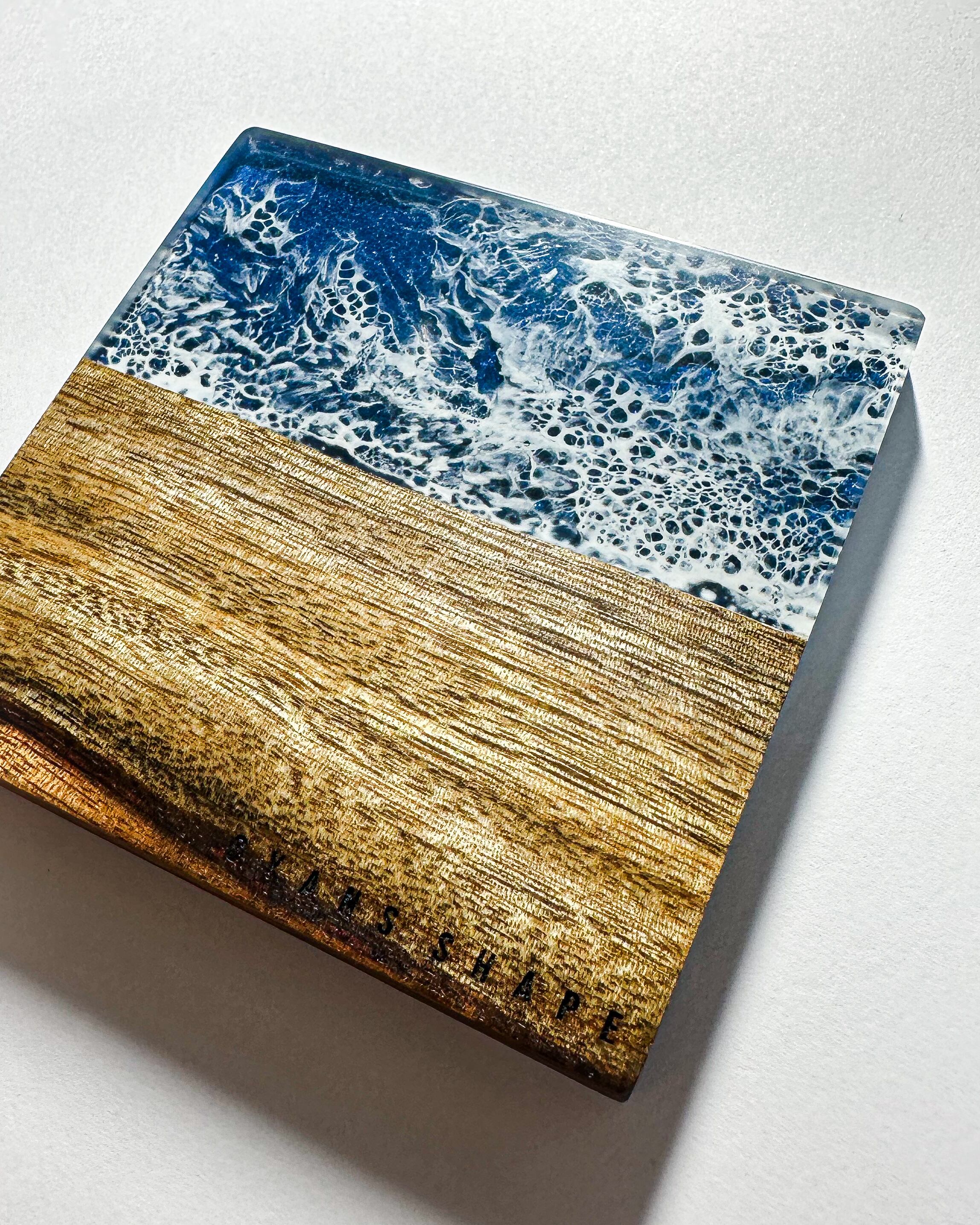 シェイパーが創り出す作品はひとつひとつ丁寧に手作業で仕上げます。樹脂の色や模様、木が持つ本来の特徴がそれぞれ異なるため、同じ作品は出来ません。