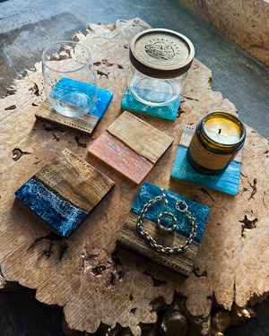 シェイパーが創り出す作品はひとつひとつ丁寧に手作業で仕上げます。樹脂の色や模様、木が持つ本来の特徴がそれぞれ異なるため、同じ作品は出来ません。