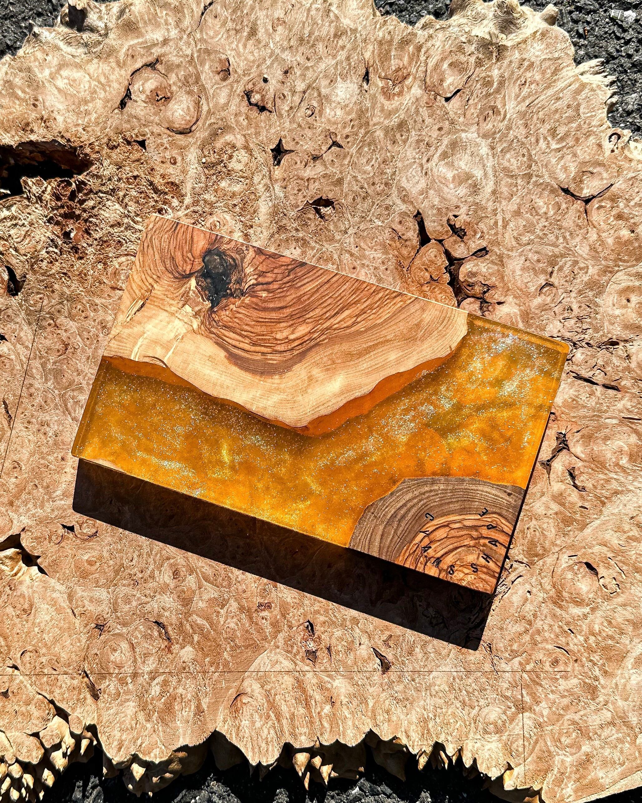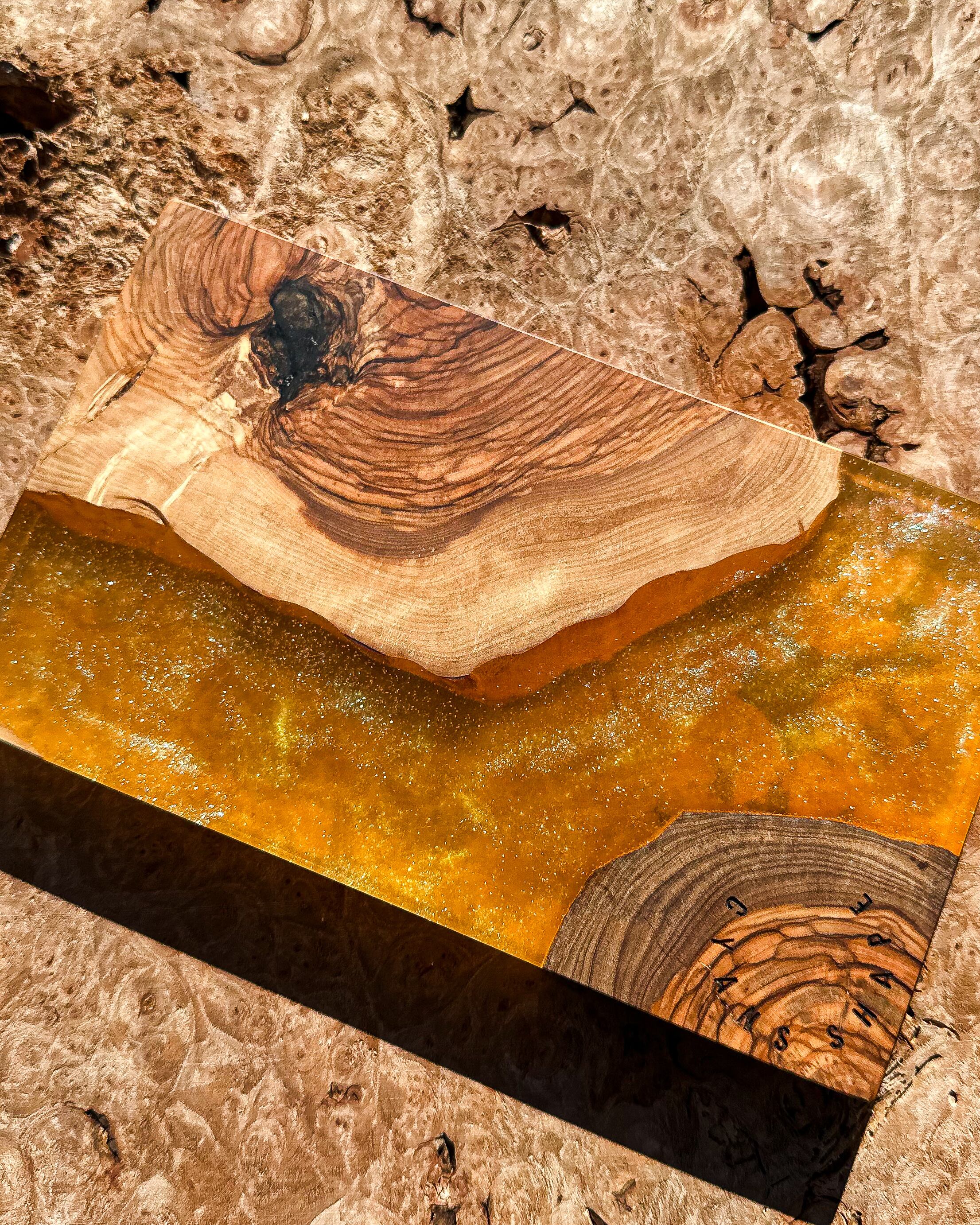 シェイパーが創り出す作品はひとつひとつ丁寧に手作業で仕上げます。樹脂の色や模様、木が持つ本来の特徴がそれぞれ異なるため、同じ作品は出来ません。