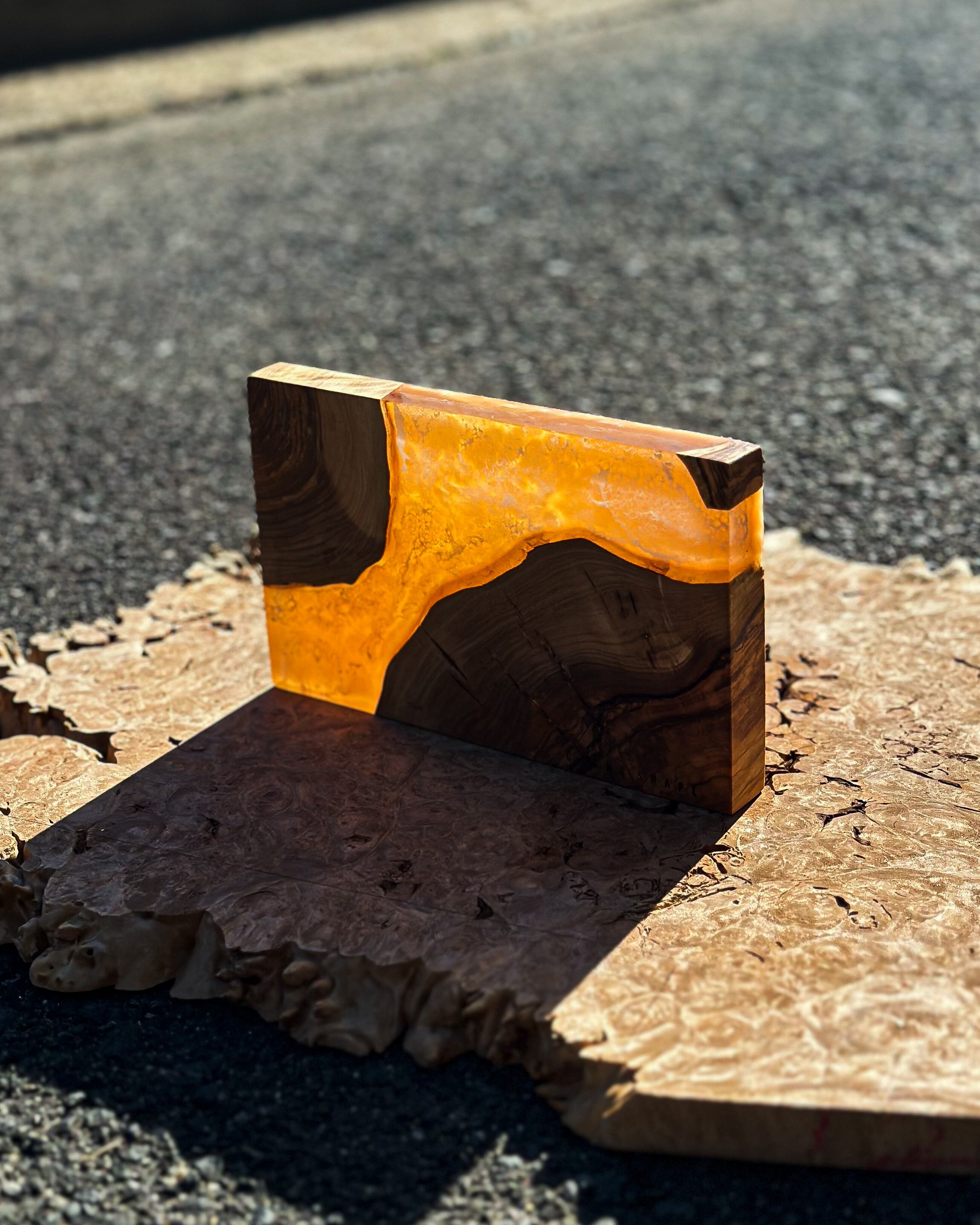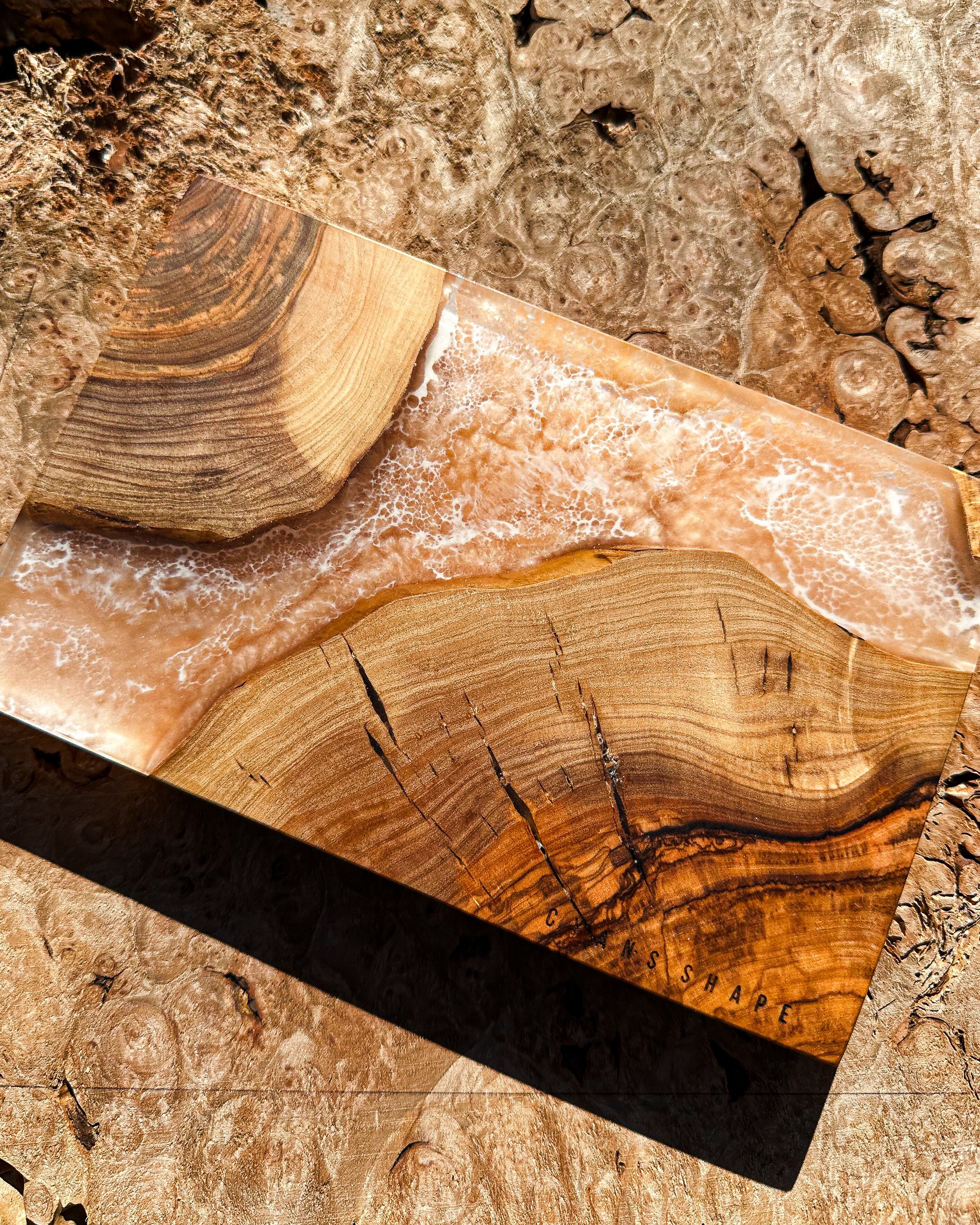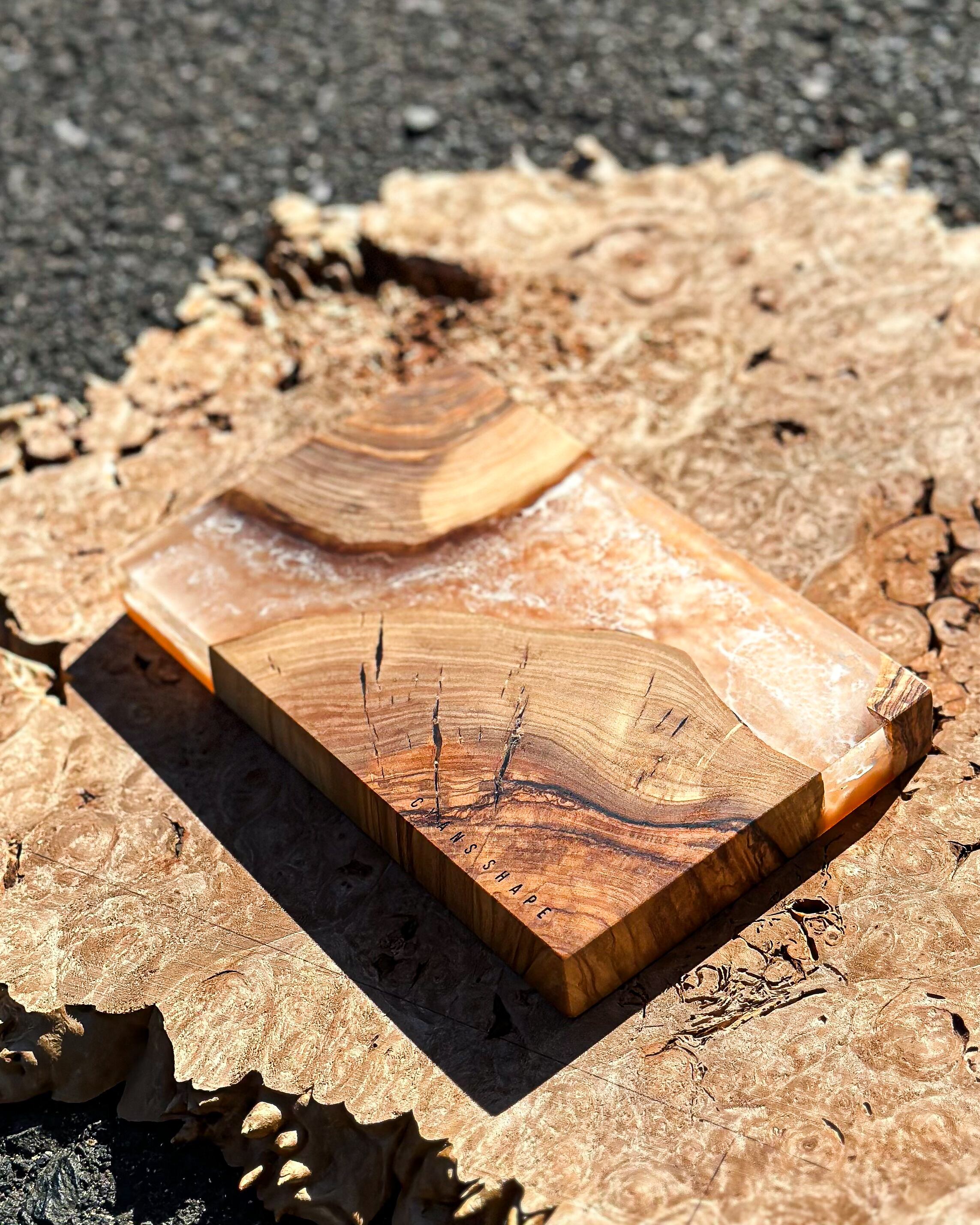 シェイパーが創り出す作品はひとつひとつ丁寧に手作業で仕上げます。樹脂の色や模様、木が持つ本来の特徴がそれぞれ異なるため、同じ作品は出来ません。