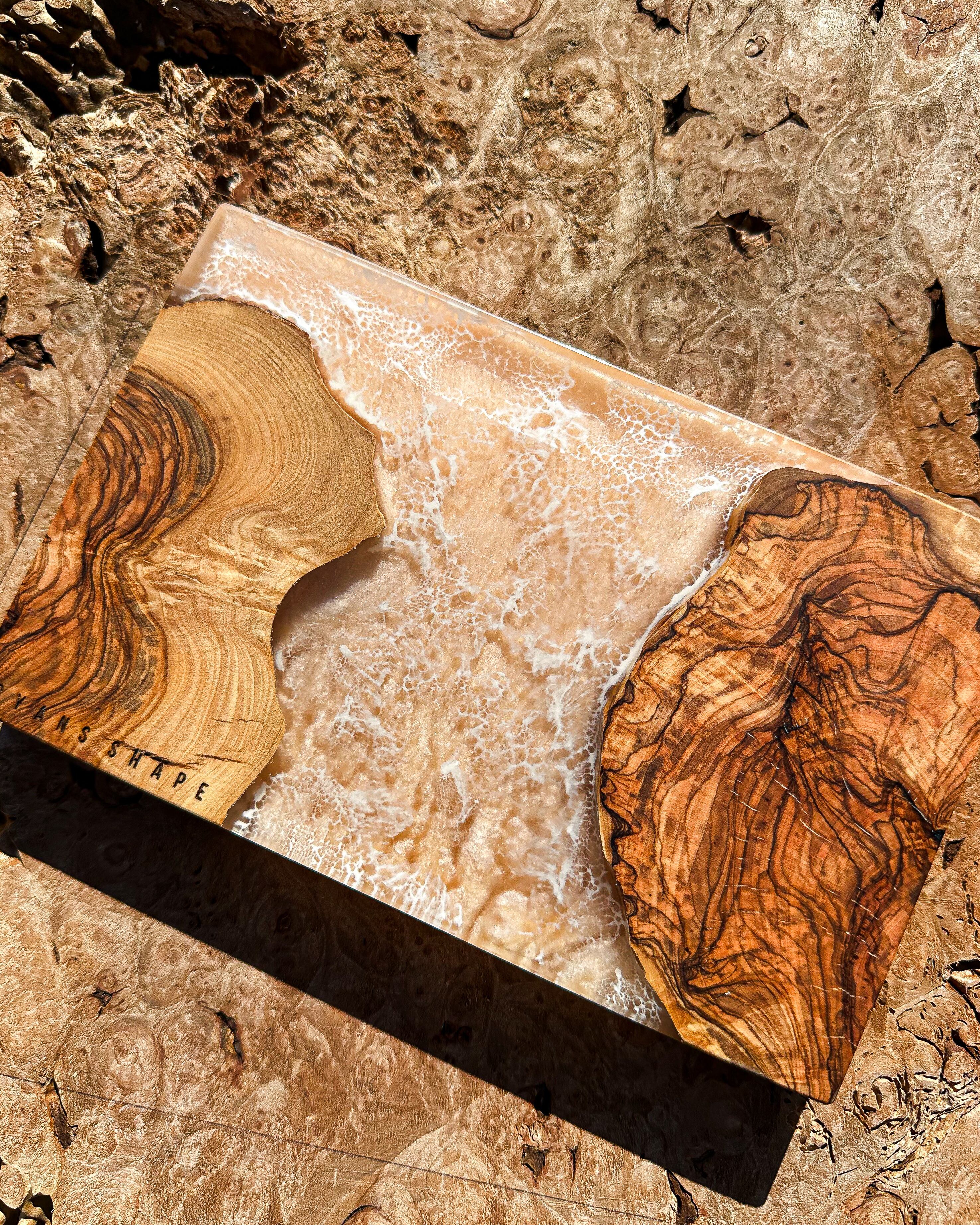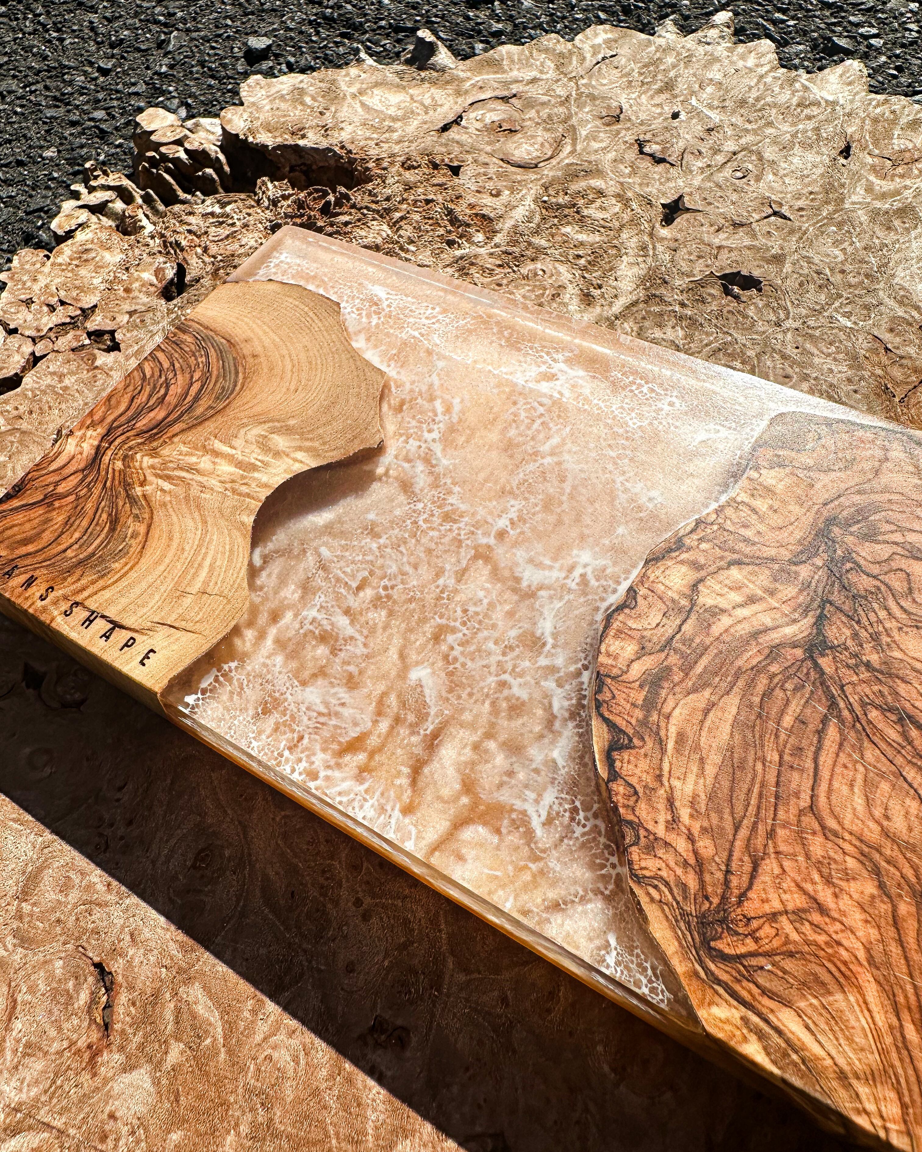 シェイパーが創り出す作品はひとつひとつ丁寧に手作業で仕上げます。樹脂の色や模様、木が持つ本来の特徴がそれぞれ異なるため、同じ作品は出来ません。