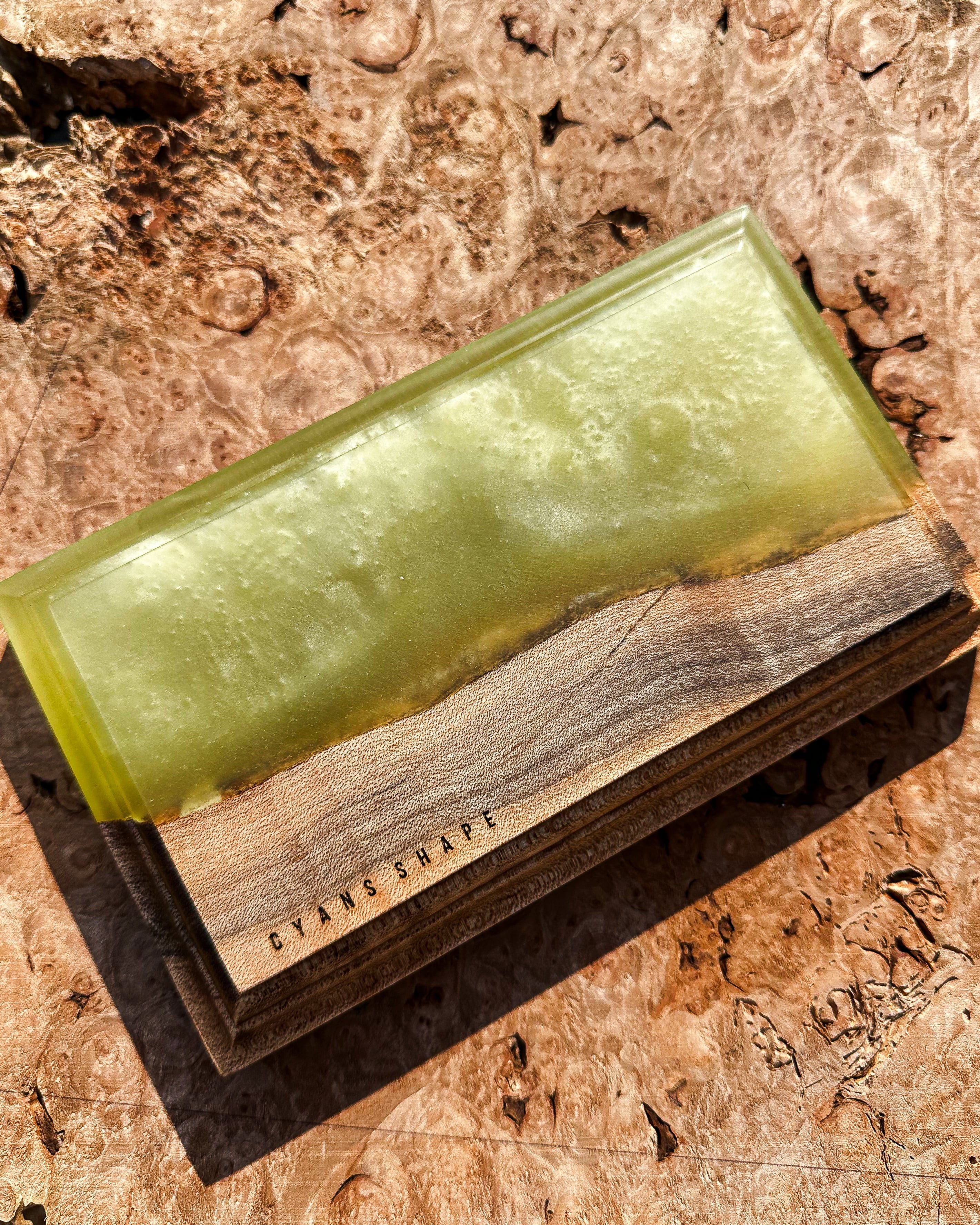 シェイパーが創り出す作品はひとつひとつ丁寧に手作業で仕上げます。樹脂の色や模様、木が持つ本来の特徴がそれぞれ異なるため、同じ作品は出来ません。