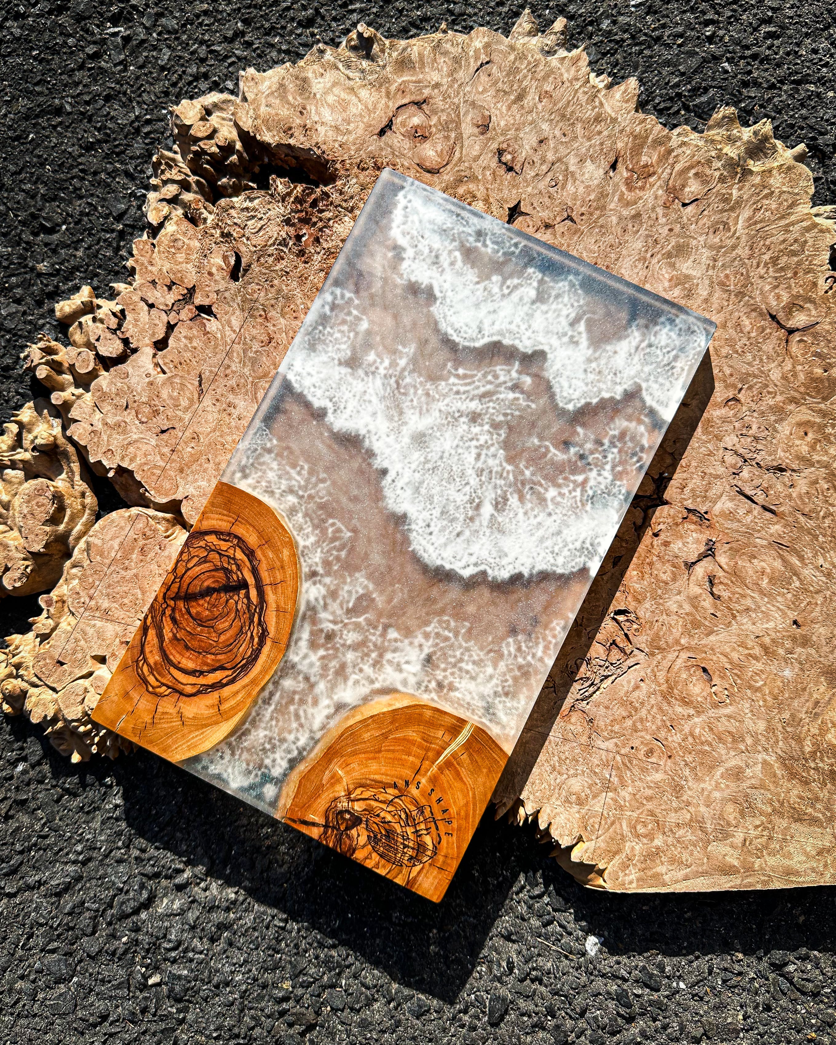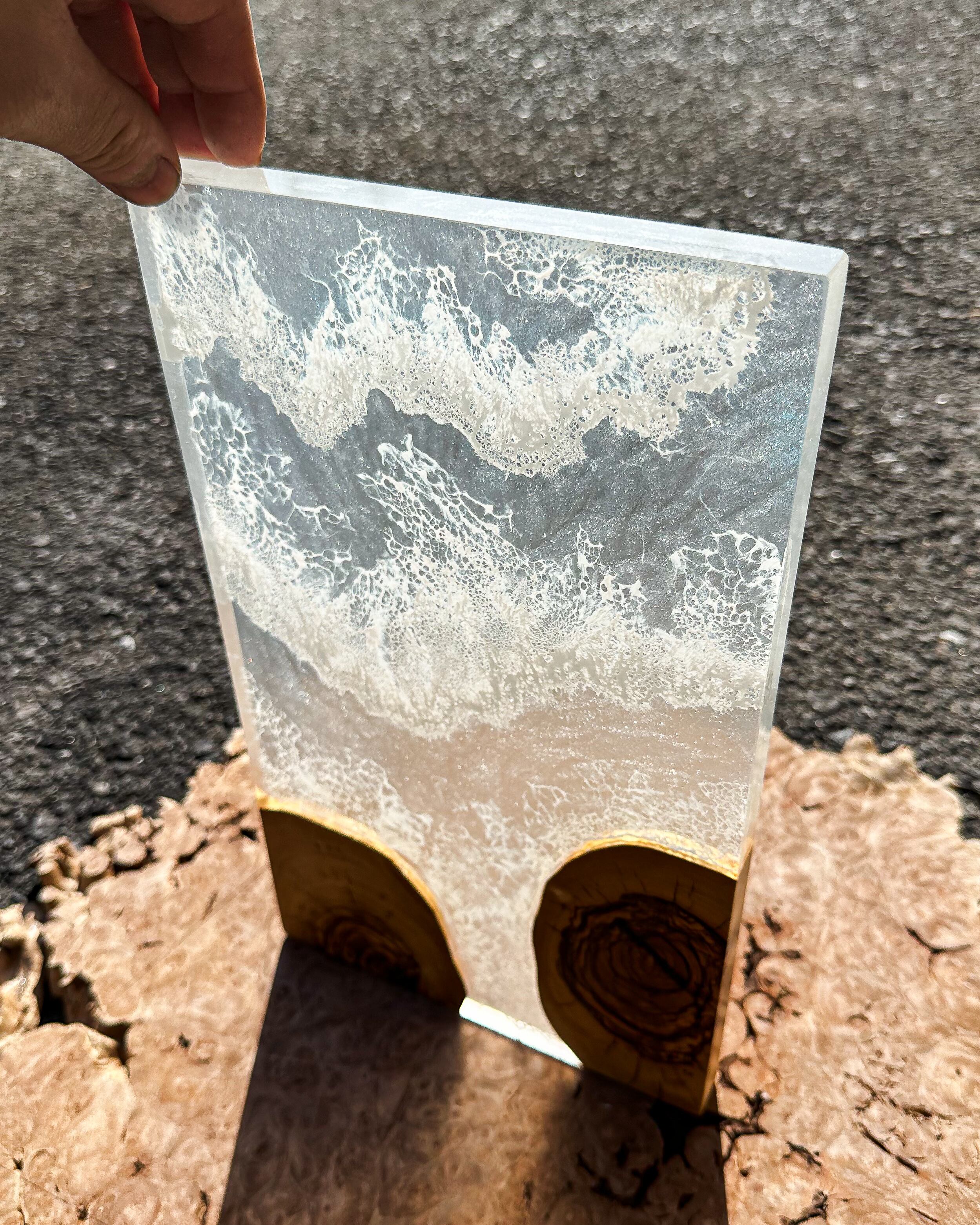 樹脂を何層も重ね立体的な模様、浮かび上がる波