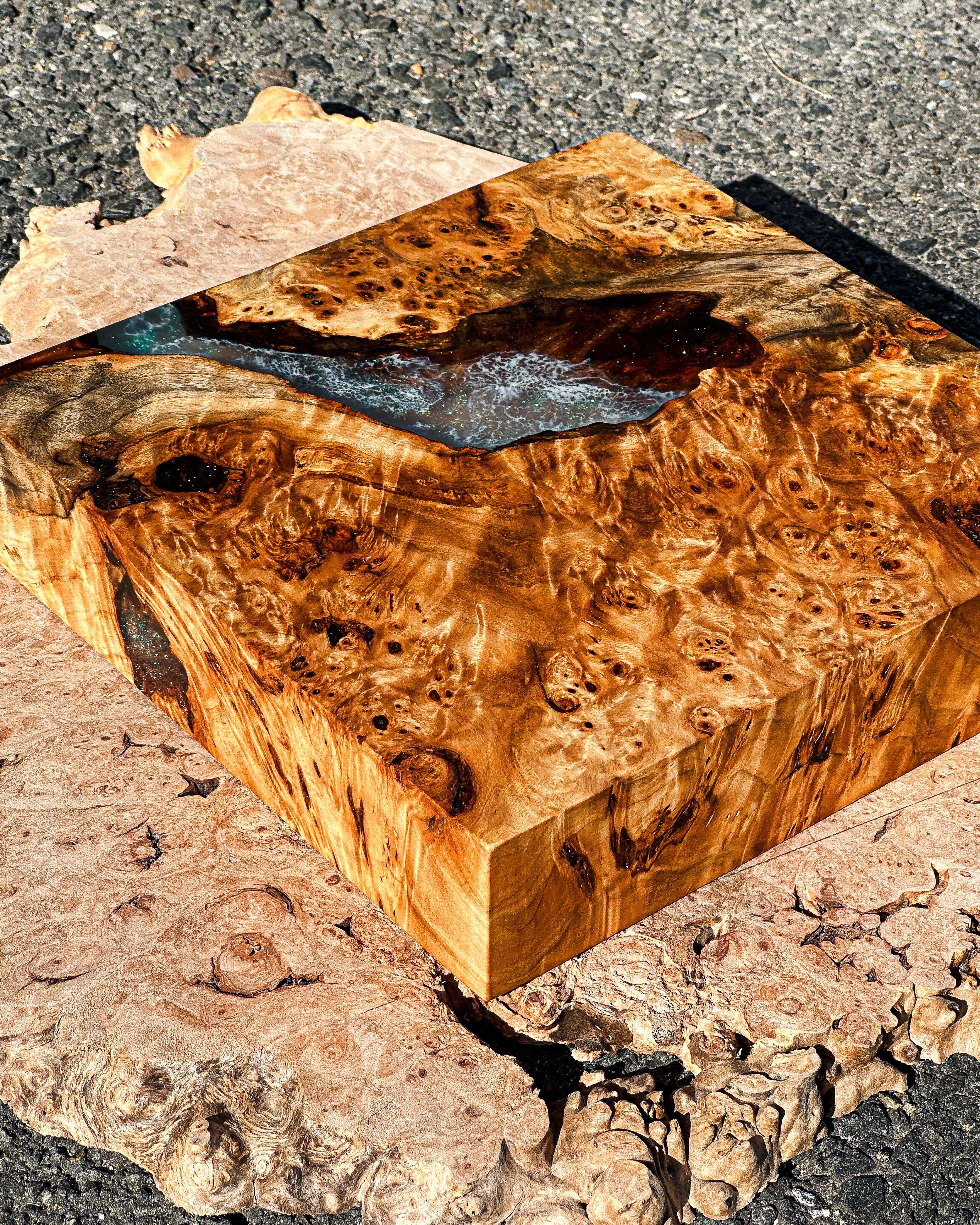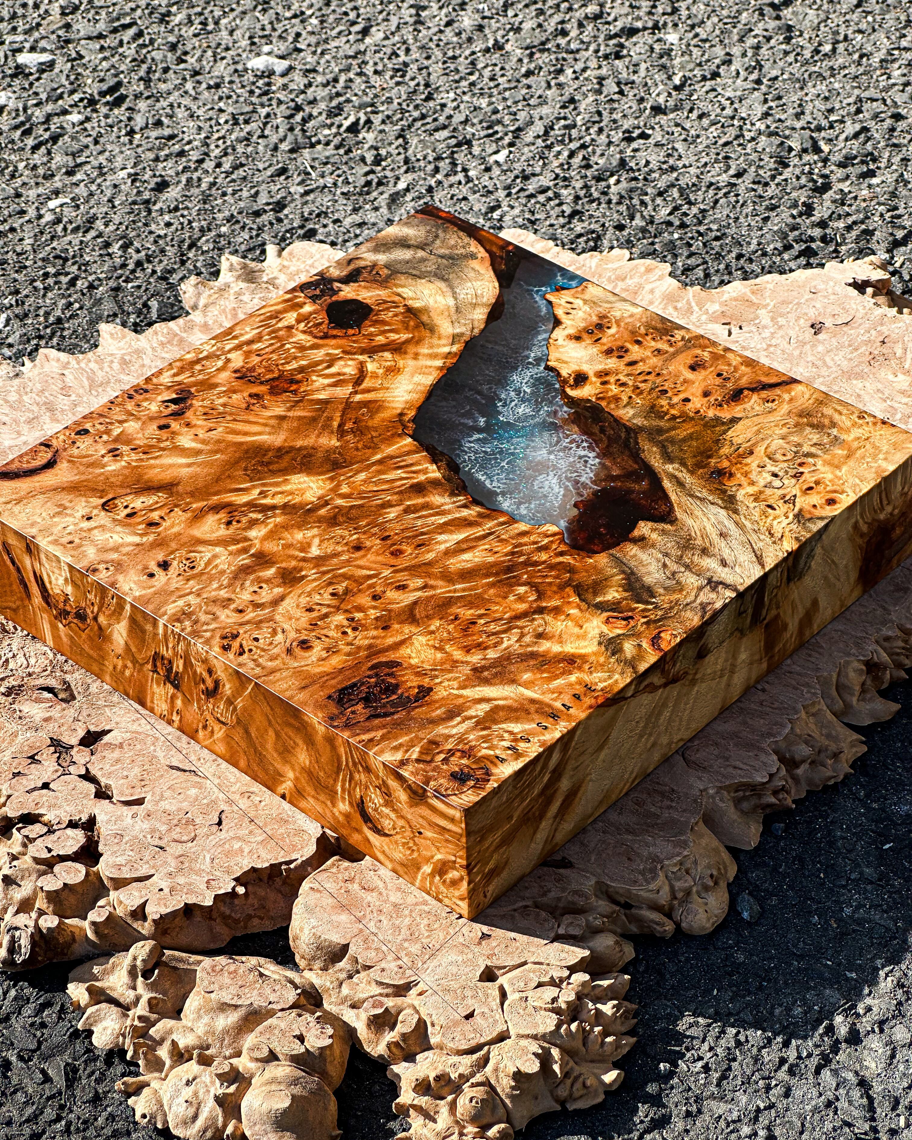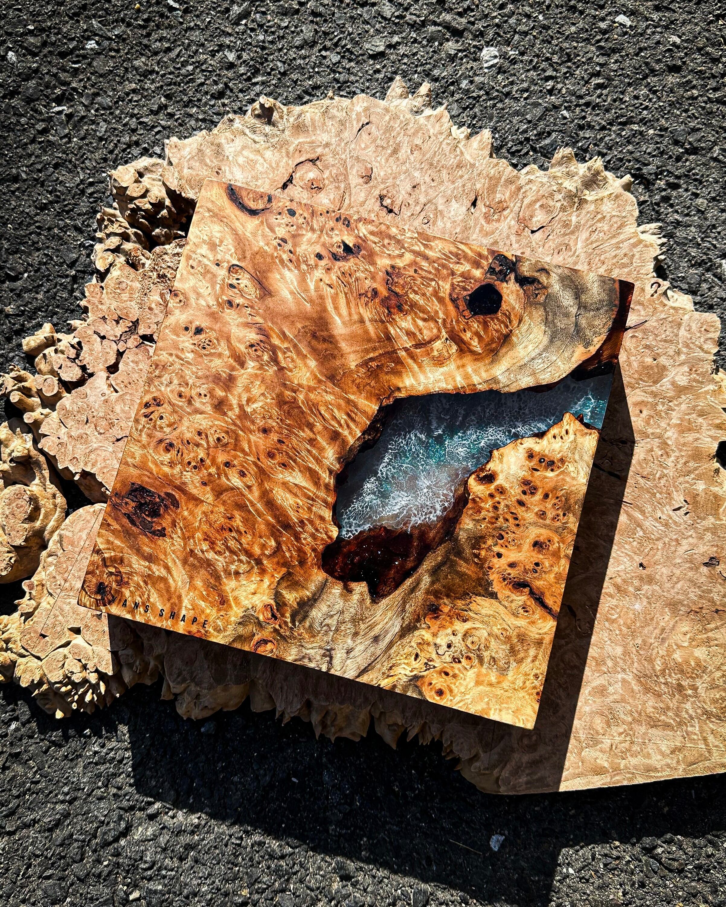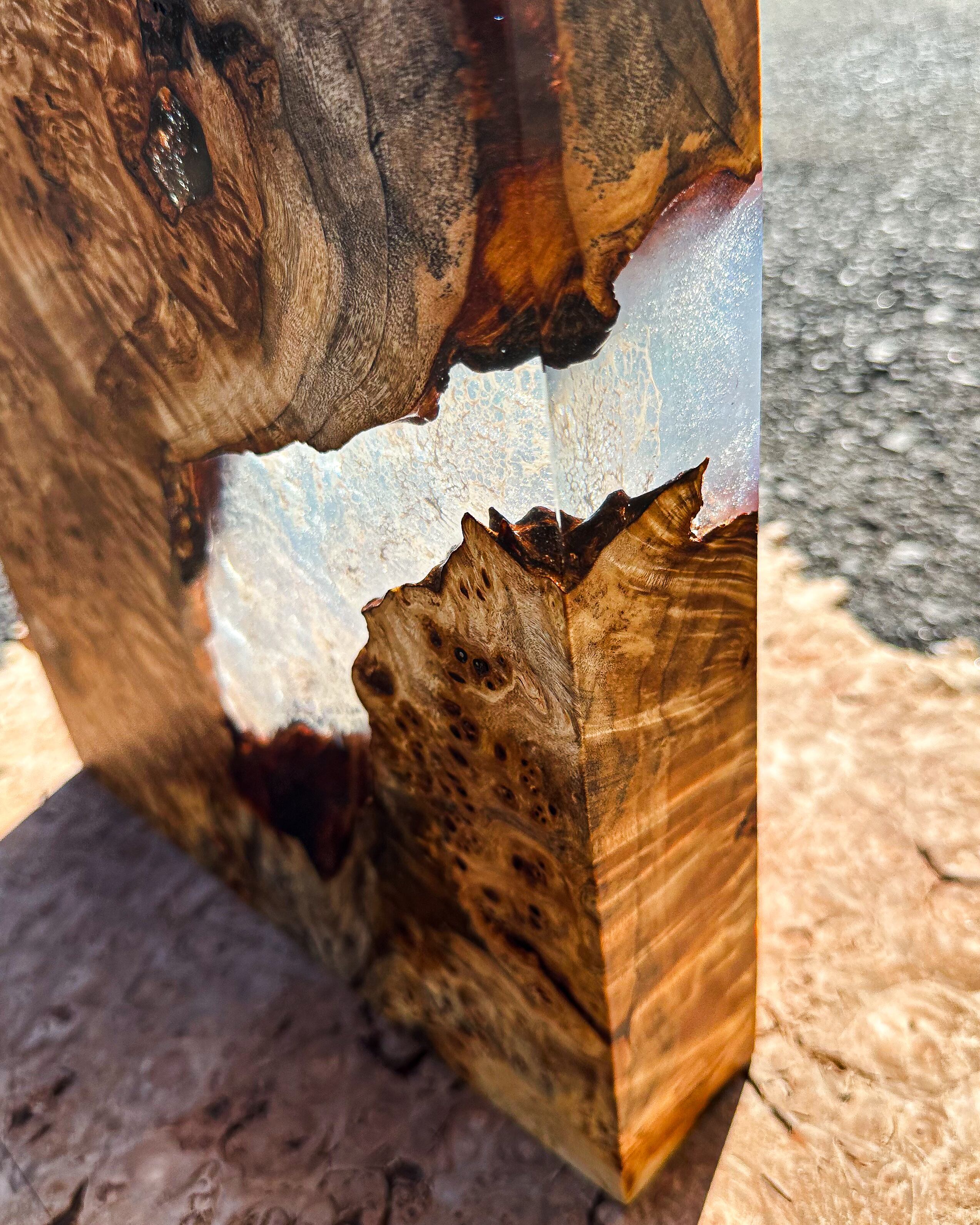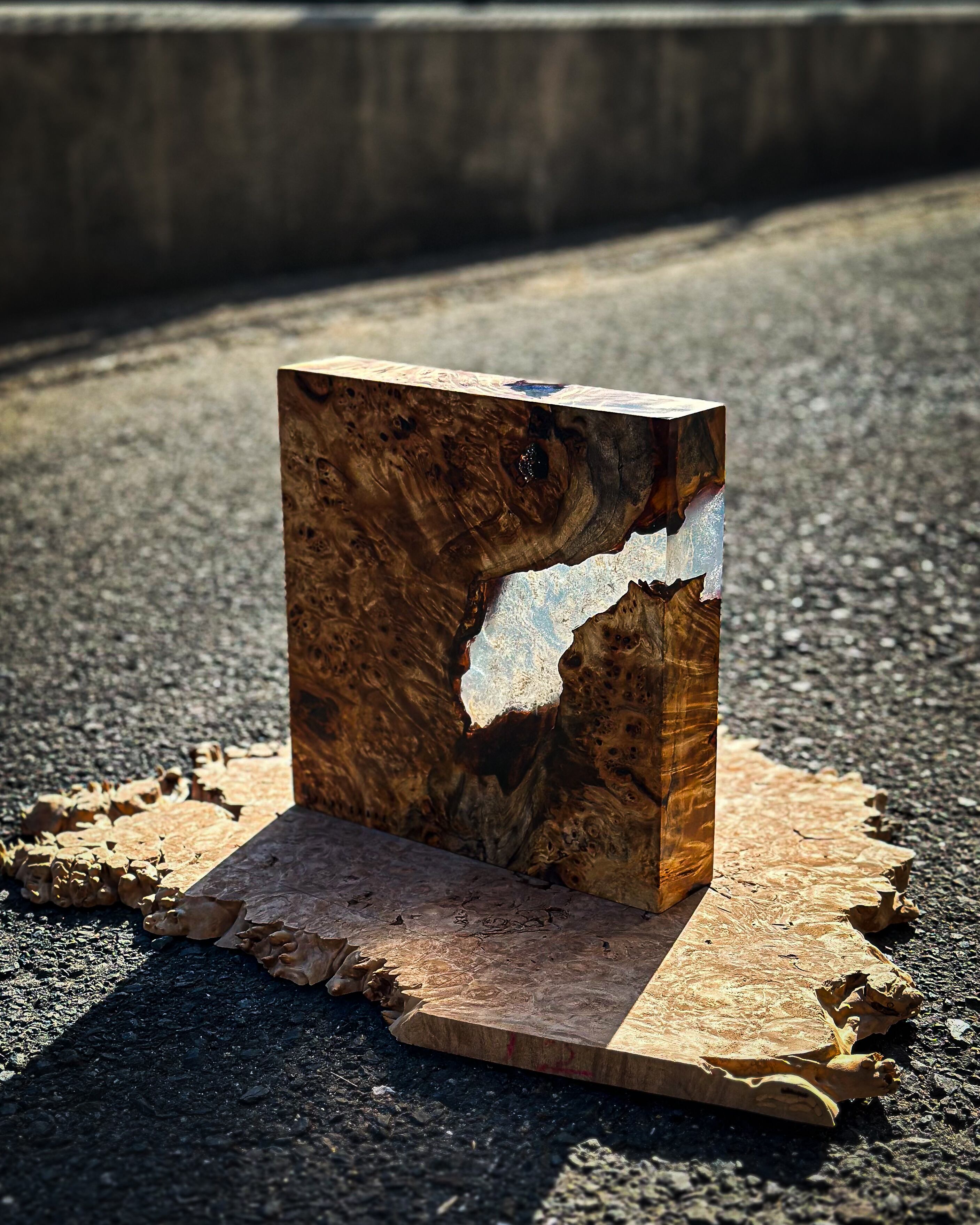 まるで海を潜ったような景色が広がるCubeは光の加減と共に色を変え、見る人それぞれの想像を爆る。作品を立てて光を楽しみ寝かせて深い海に潜ってみるのも。日常の中でアートとして、またオブジェとしても楽しめるようなこの作品に心を浸してみては。