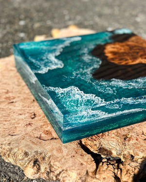 まるで海を潜ったような景色が広がるCubeは光の加減と共に色を変え、見る人それぞれの想像を爆る。作品を立てて光を楽しみ寝かせて深い海に潜ってみるのも。日常の中でアートとして、またオブジェとしても楽しめるようなこの作品に心を浸してみては。