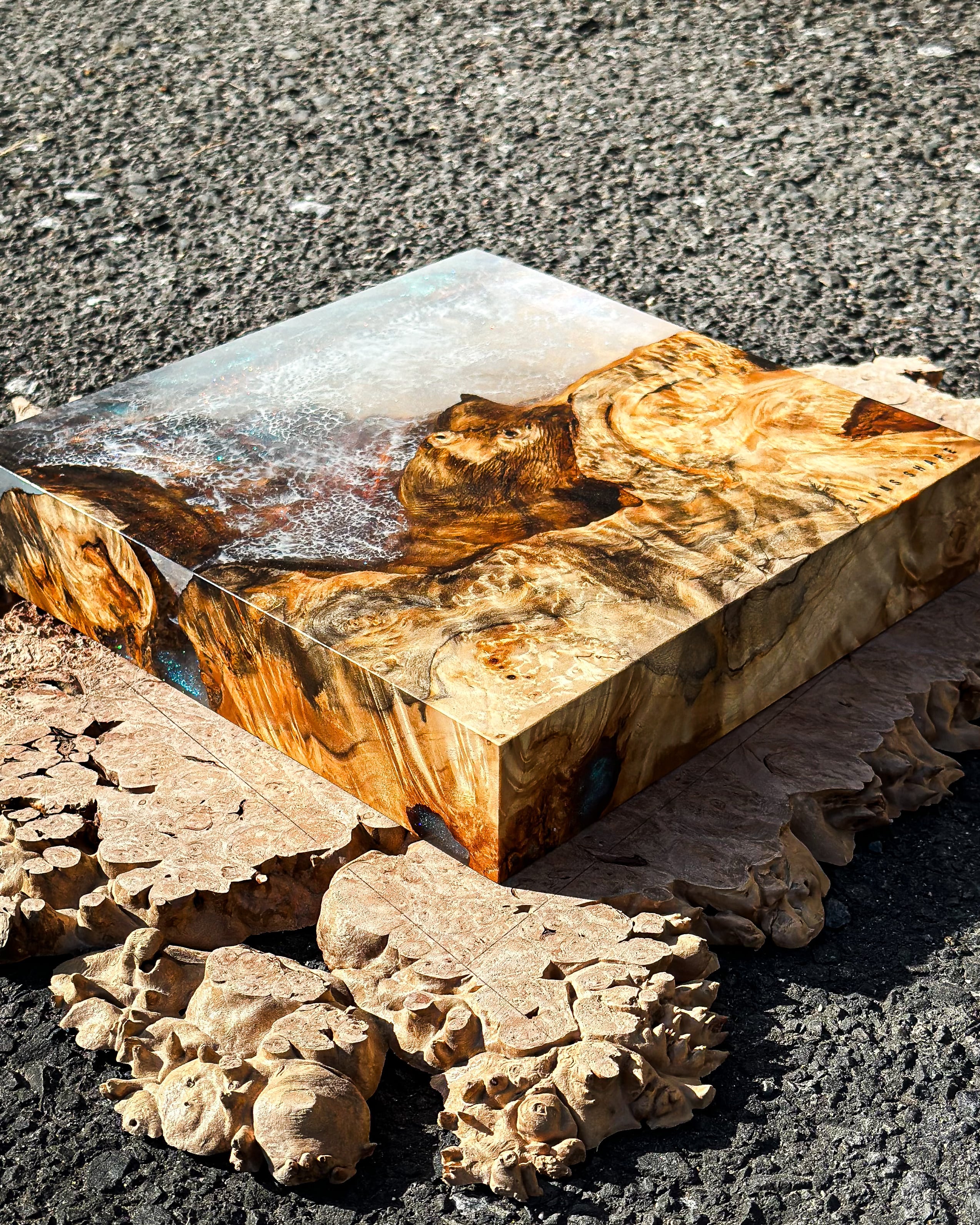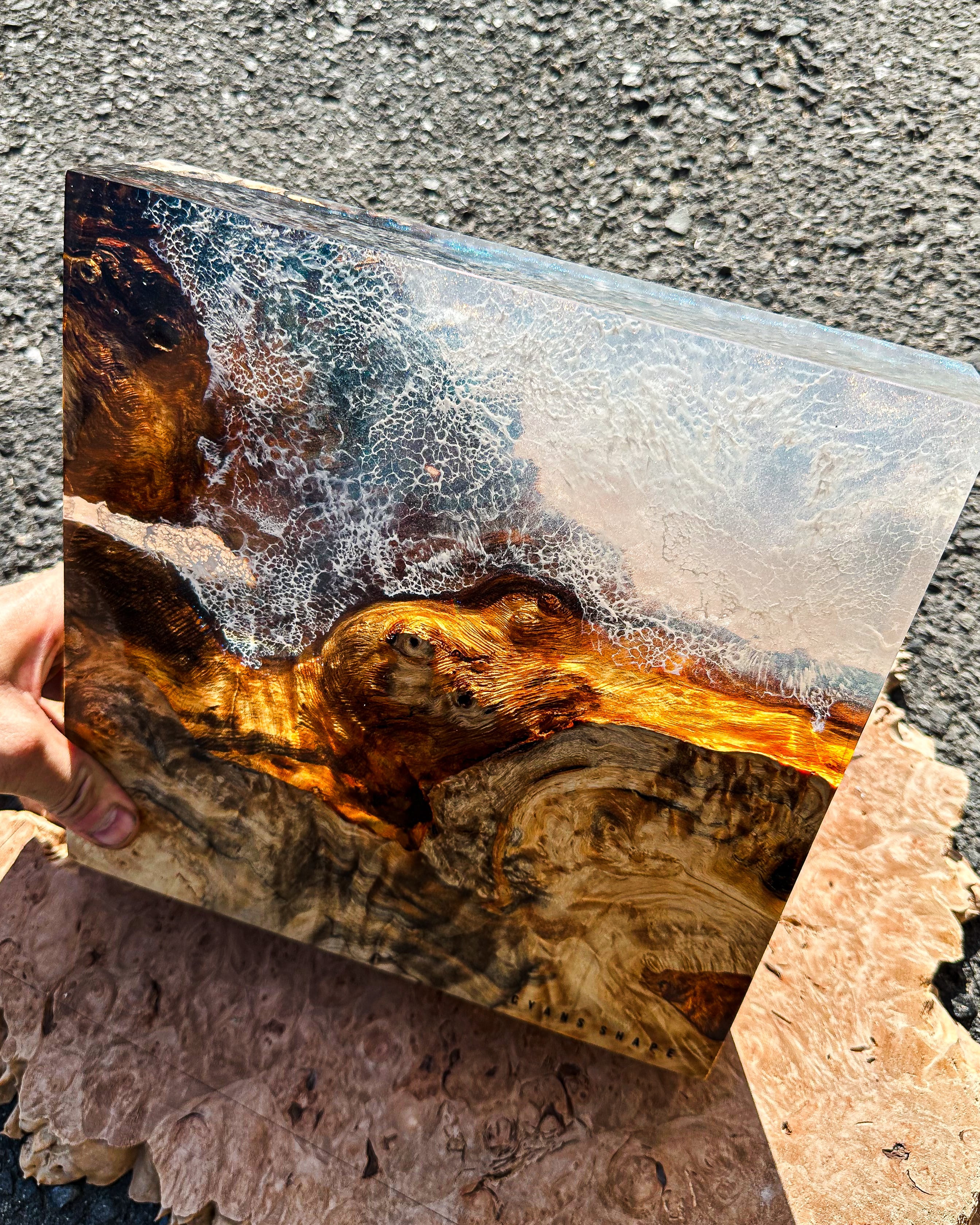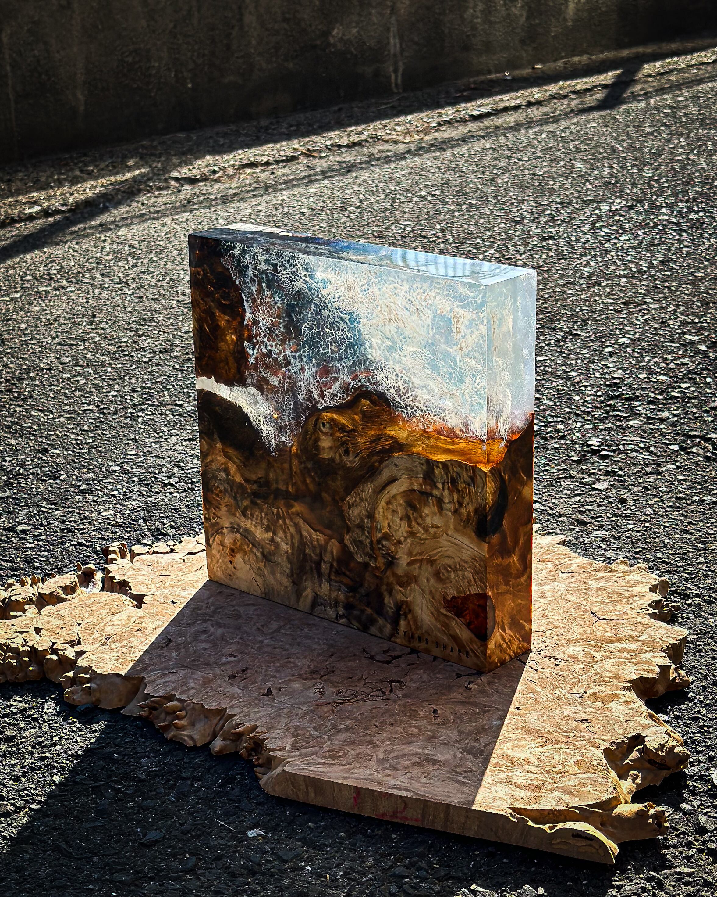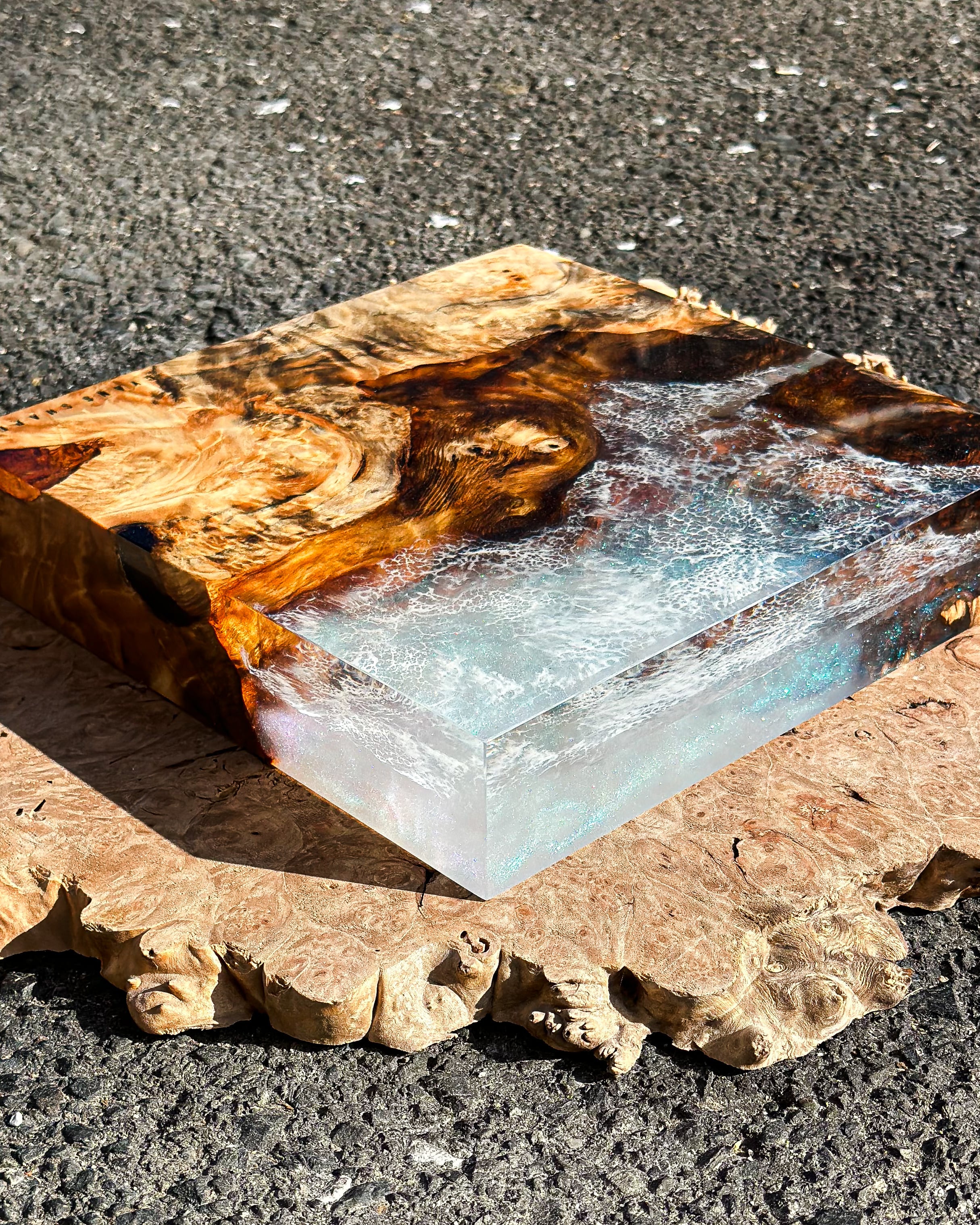 まるで海を潜ったような景色が広がるCubeは光の加減と共に色を変え、見る人それぞれの想像を爆る。作品を立てて光を楽しみ寝かせて深い海に潜ってみるのも。日常の中でアートとして、またオブジェとしても楽しめるようなこの作品に心を浸してみては。