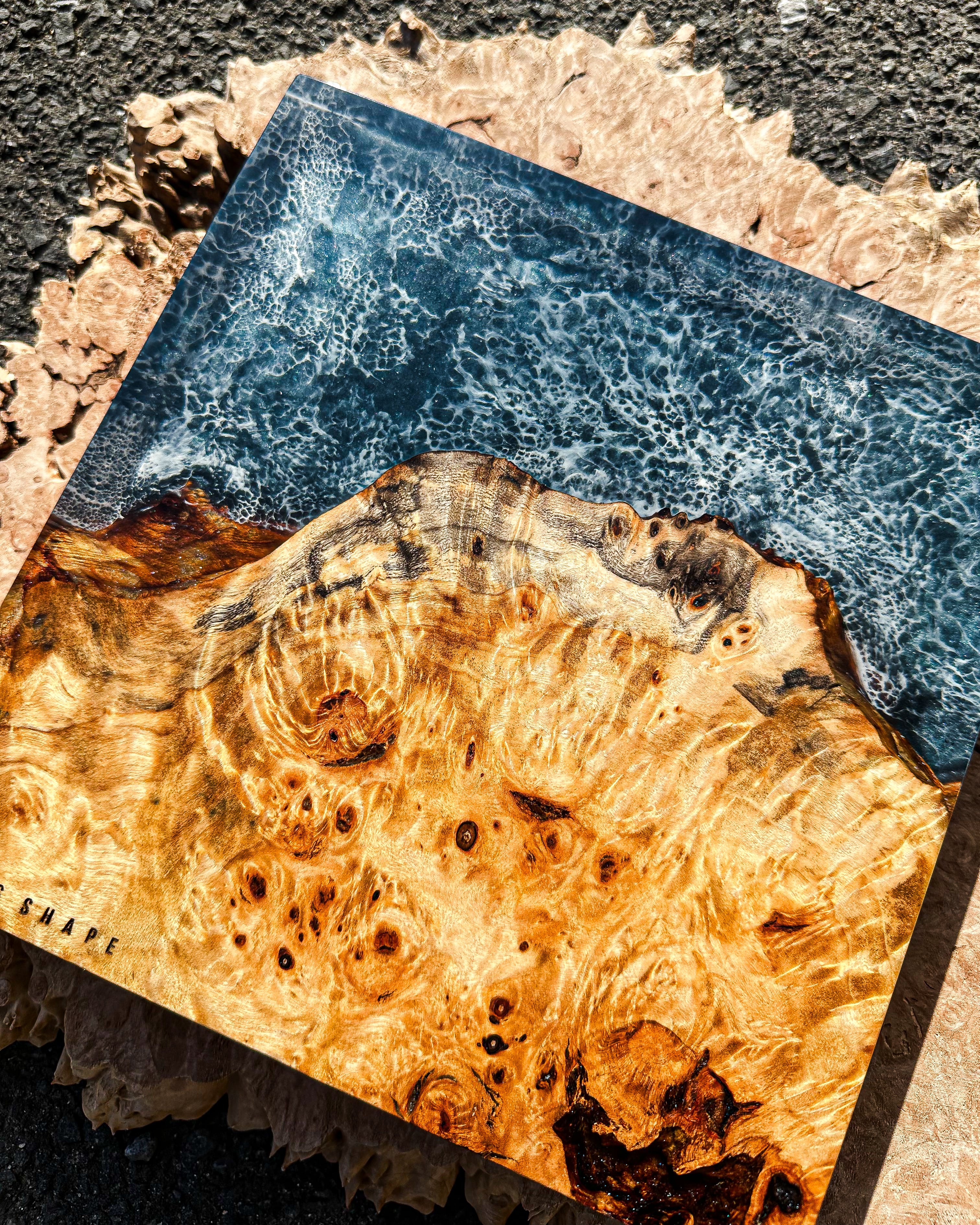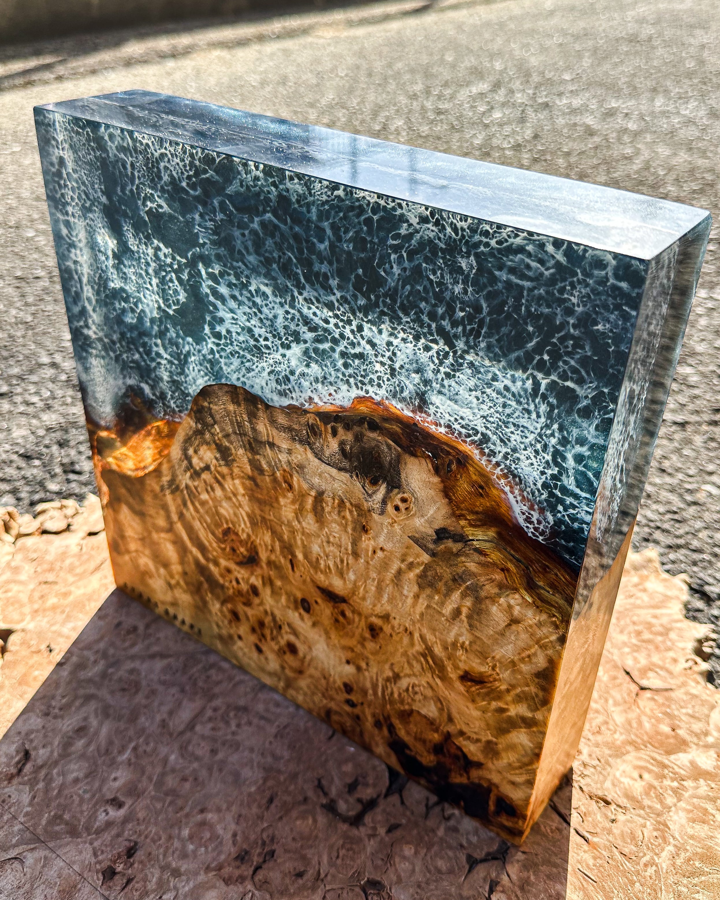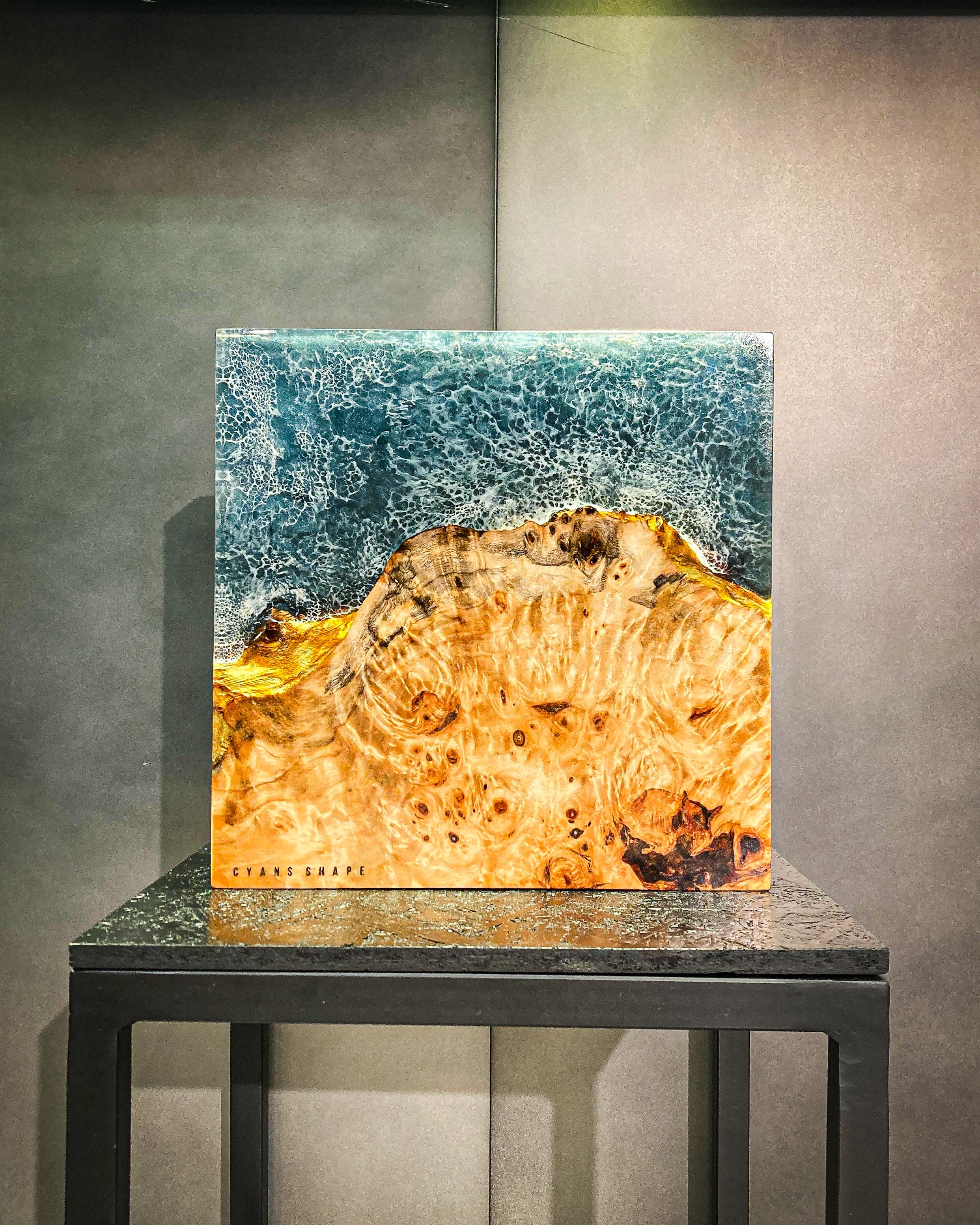 まるで海を潜ったような景色が広がるCubeは光の加減と共に色を変え、見る人それぞれの想像を爆る。作品を立てて光を楽しみ寝かせて深い海に潜ってみるのも。日常の中でアートとして、またオブジェとしても楽しめるようなこの作品に心を浸してみては。