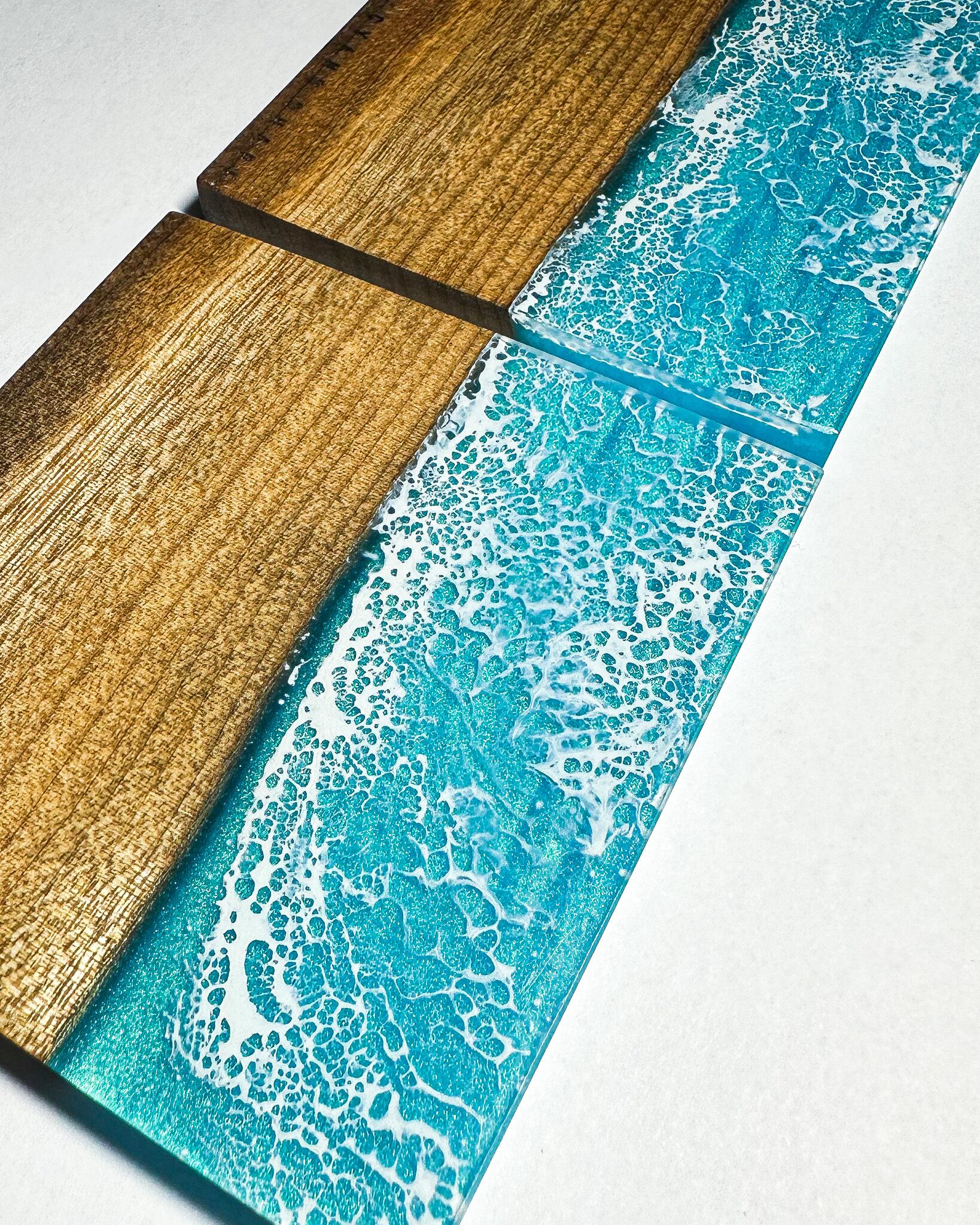 レジンは熱に弱く、長時間熱いものを置くと薄く跡が残ることがあります。耐熱温度は約80度前後となっております。光の反射でうっすら見える程度ですが気になる方は熱いものを置くことはお控えください。