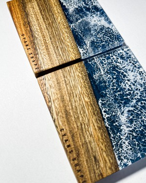 レジンは熱に弱く、長時間熱いものを置くと薄く跡が残ることがあります。耐熱温度は約80度前後となっております。光の反射でうっすら見える程度ですが気になる方は熱いものを置くことはお控えください。