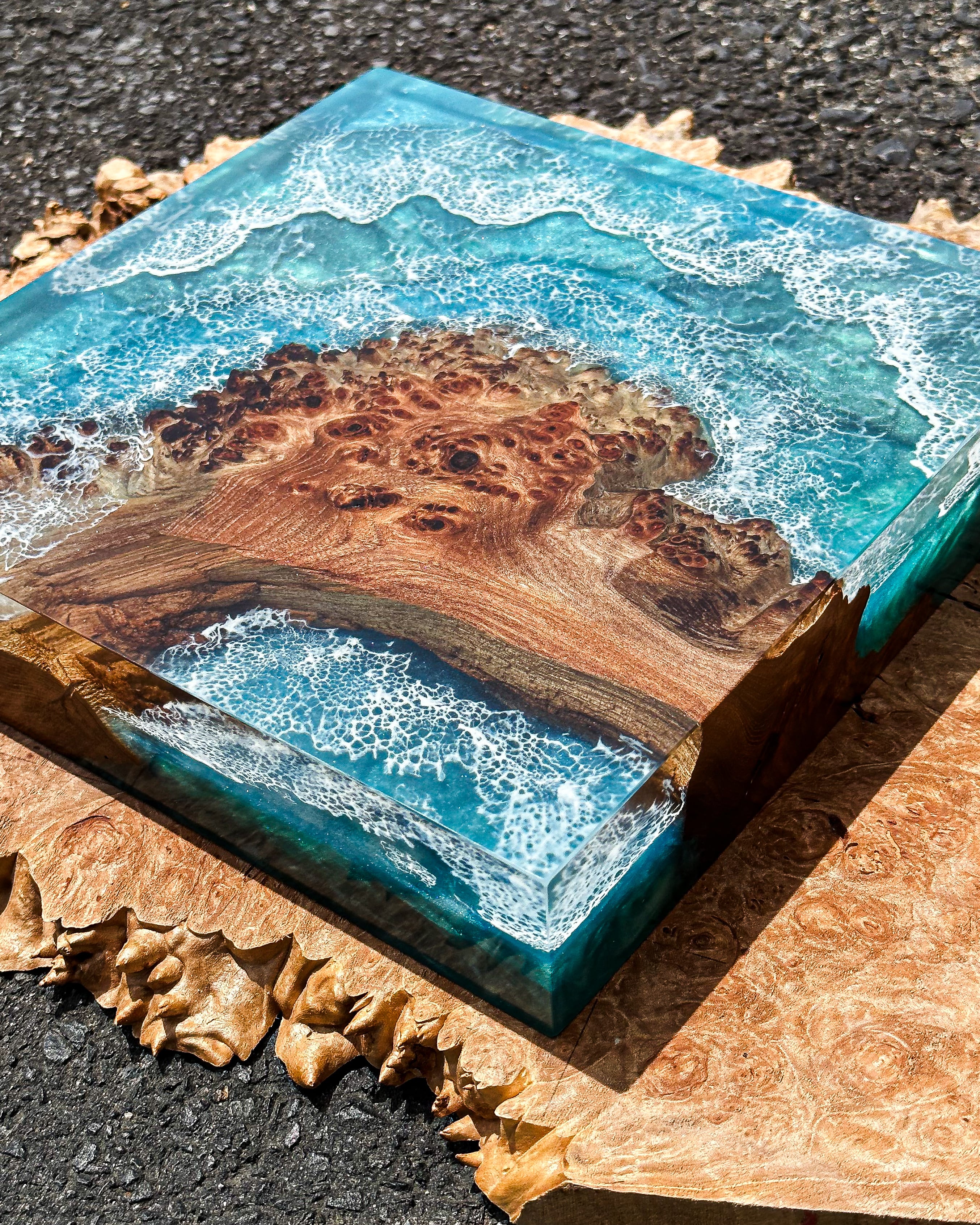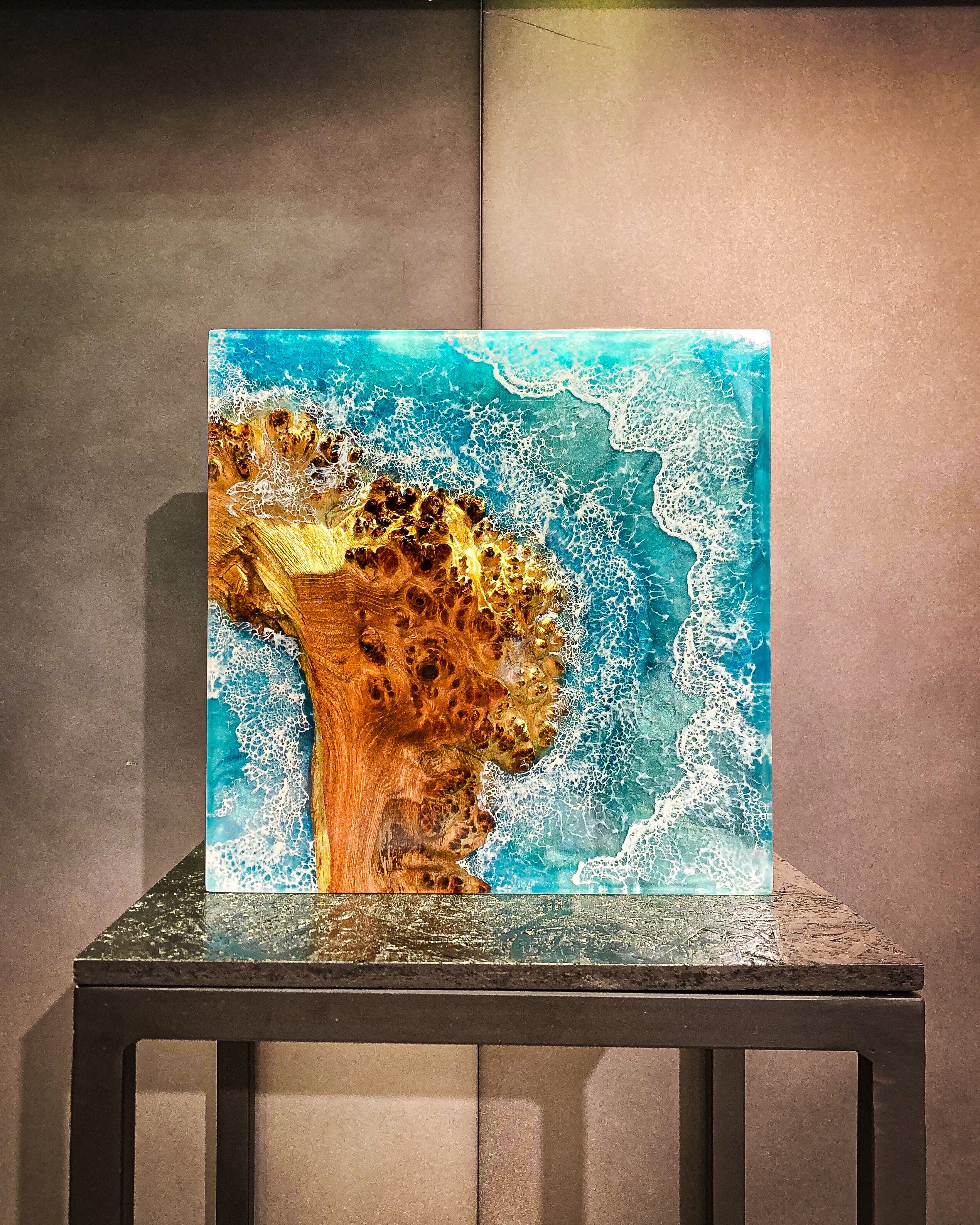 まるで海を潜ったような景色が広がるCubeは光の加減と共に色を変え、見る人それぞれの想像を爆る。作品を立てて光を楽しみ寝かせて深い海に潜ってみるのも。日常の中でアートとして、またオブジェとしても楽しめるようなこの作品に心を浸してみては。