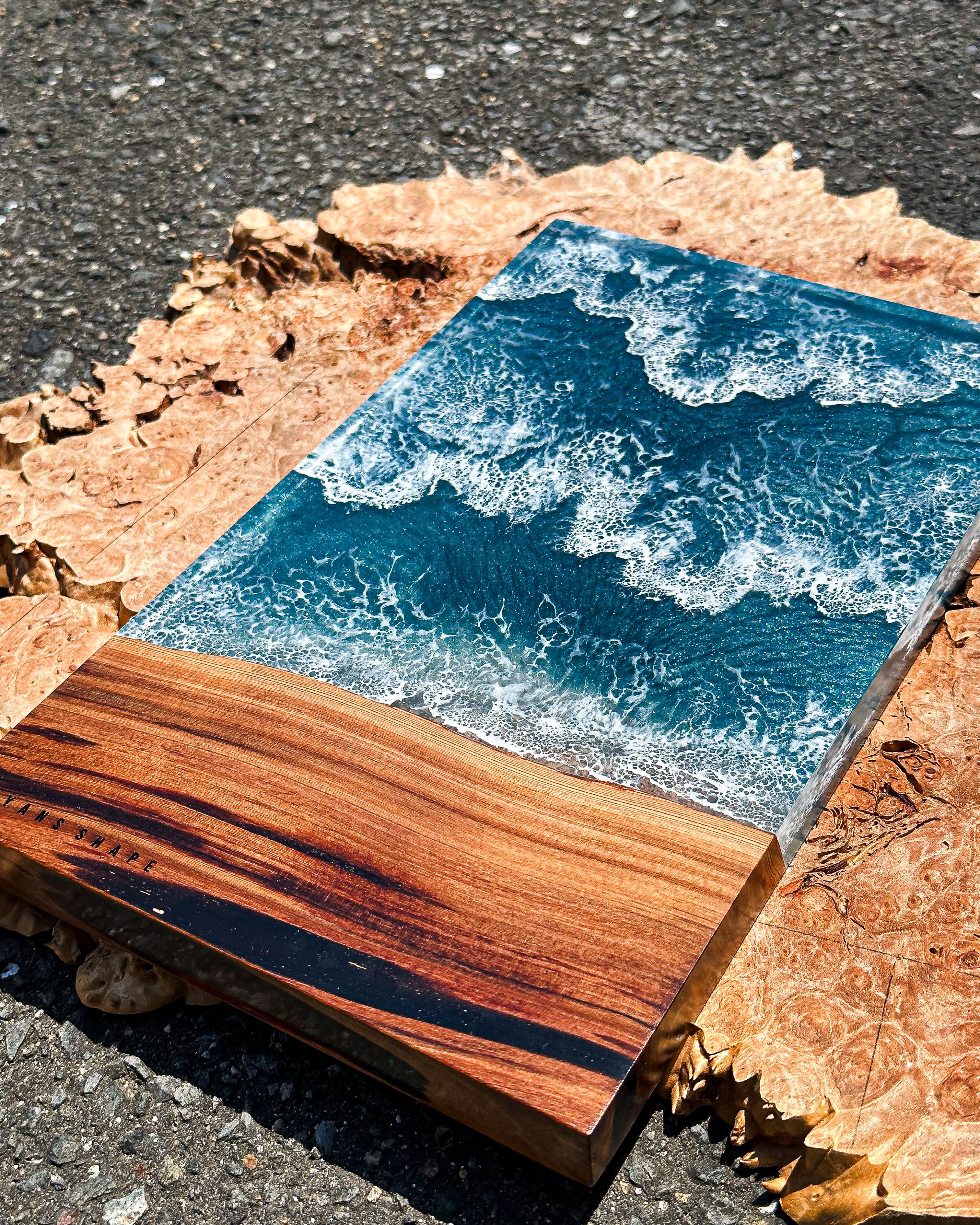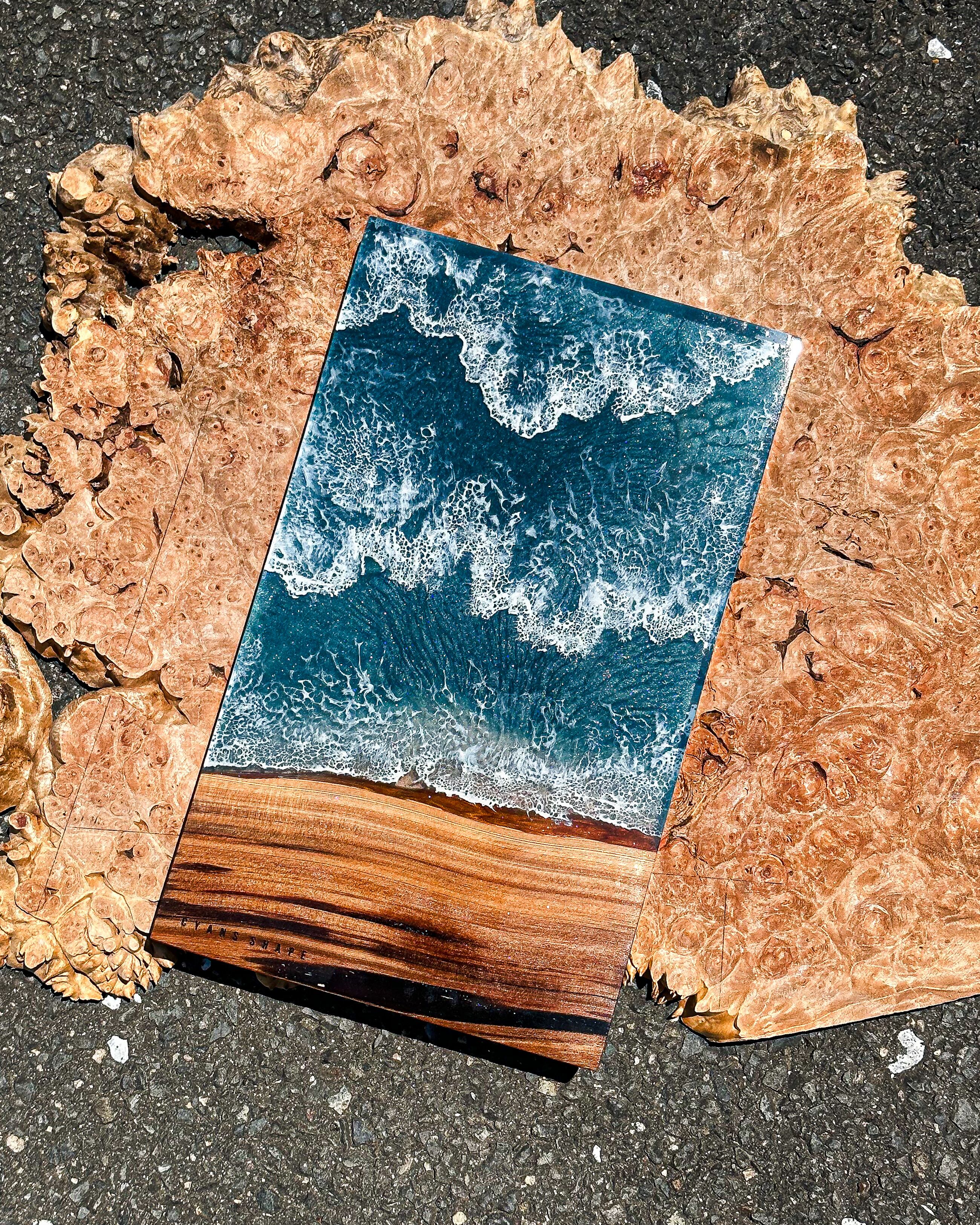 樹脂を何層も重ね立体的な模様、浮かび上がる波